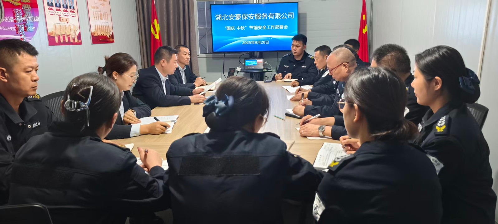 9月28日晚,湖北安豪保安服务有限公司组织召开节前安全生产工作专题会议。会议由公司总经理上官敬升主持,公司领导班子、大队主管及基层骨干参会。