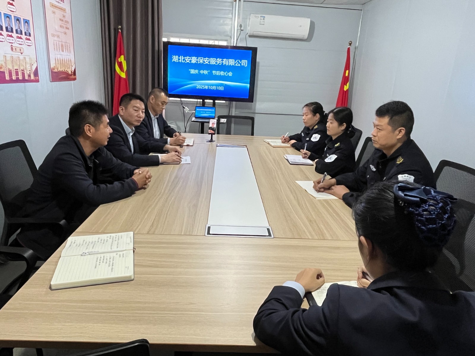 10月10日,安豪保安公司组织召开节后收心会,旨在迅速引导职工调整工作状态,确保节后各项工作高效有序开展。集团党委委员、副总经理肖道林出席会议并讲话。保安公司全体管理人员参加会议。