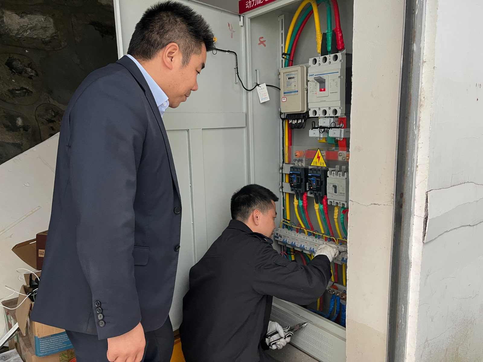 精准覆盖,隐患排查无死角。本次排查目标明确、重点突出,聚焦三大核心区域:对库区及办公楼等房屋屋顶、墙面、门窗进行严密勘查,精准记录因雨水侵蚀导致的渗漏、霉变风险点;对驻县大队的围墙、边坡、排水系统进行实地巡查,评估因持续降雨可能造成的土质松动、地基下沉及积水隐患;对配电线路、网络机房、安防监控等核心设备的运行状态及防潮防水性能进行测试,确保设施设备在复杂天气下始终稳定有效。