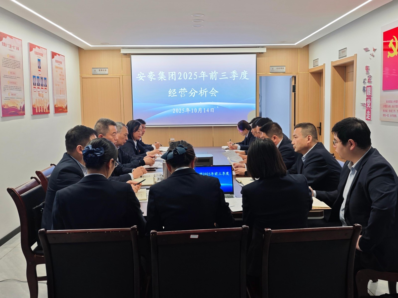 10月14日,安豪集团召开2025年经营形势分析会,研判当前经营形势,部署四季度重点工作,动员全体职工全力以赴完成年度目标任务。集团党委书记、董事长严良武出席会议并讲话,党委副书记、总经理朱明艳主持会议。