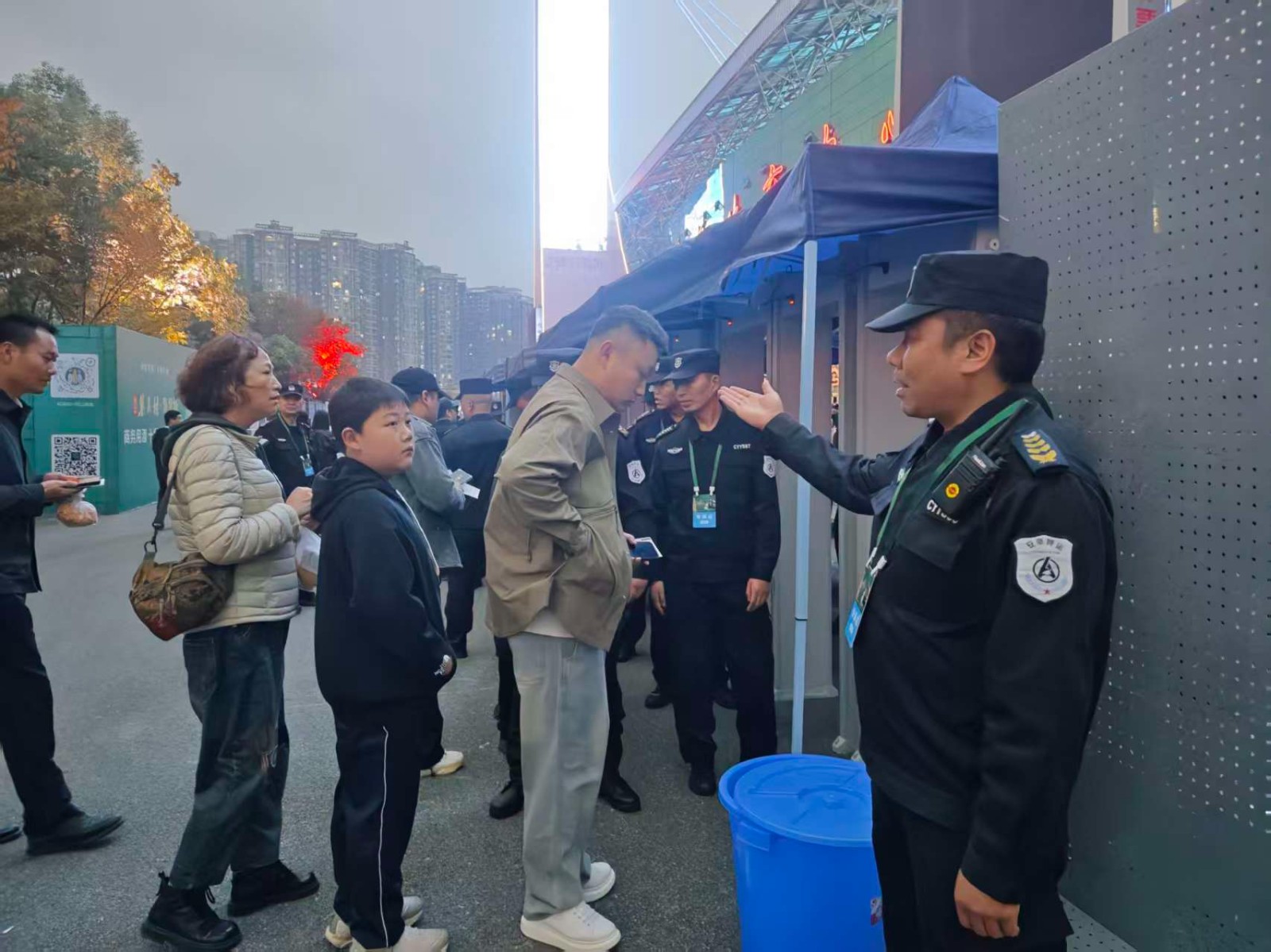 活动中,全体执勤队员提前6小时到达现场,按要求严格执行“人、票、证”三合一查验机制,通过智能验票系统与人工复核认真查验,并根据现场人流密度,及时疏导围堵人群。此次任务值守长达9小时,全体队员履职尽责,齐心协力,圆满完成安保任务。